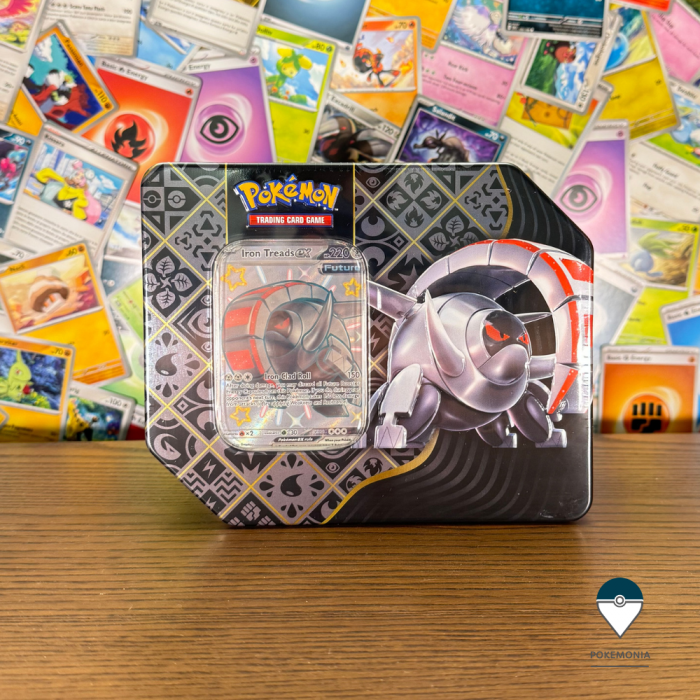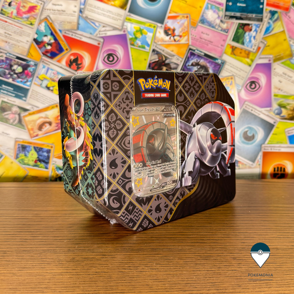 Set cartonase Pokemon TCG Scarlet & Violet Paldean Fates Tin mare Iron Treads