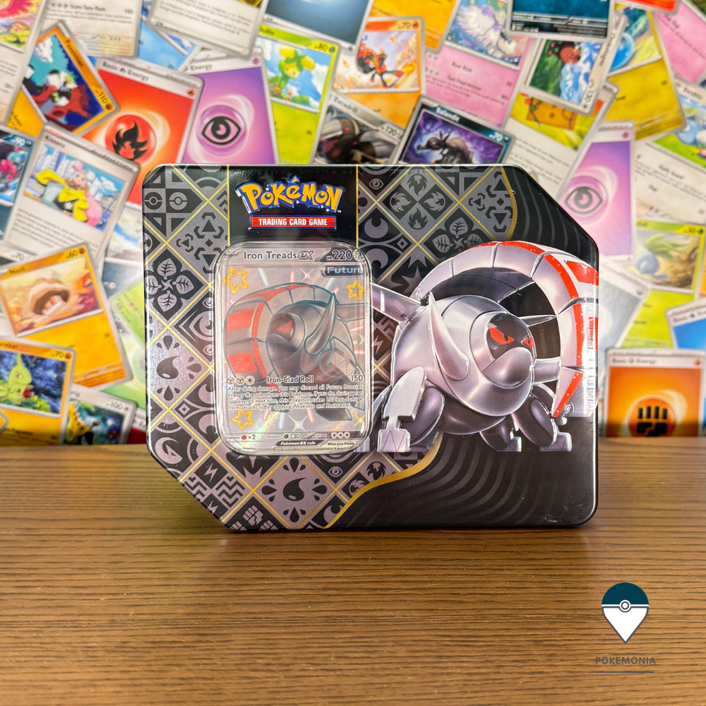 Pokemon TCG Scarlet & Violet Paldean Fates Tin mare Iron Treads contine: